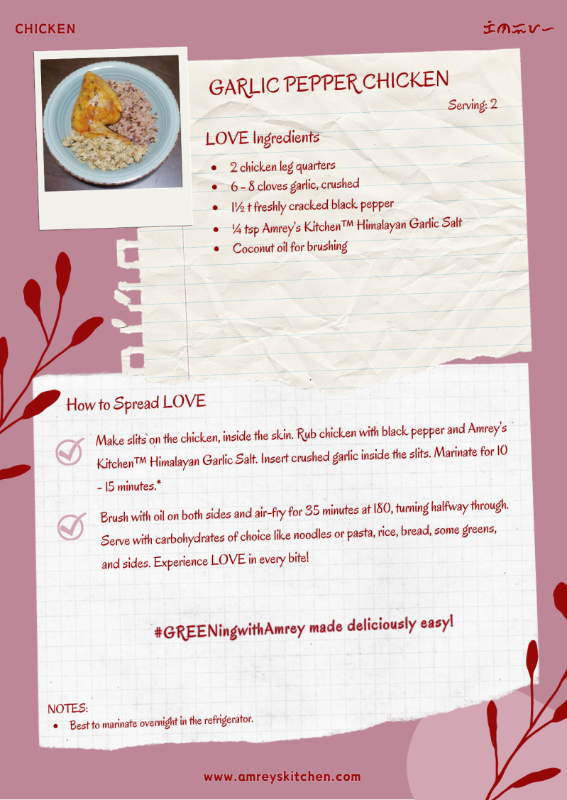 Have you ever been to Sagada and were you able to taste pinikpikan? What was your fondest memory during your trip? I look forward to seeing your version of this easy Garlic Pepper Chicken on IG @amreyskitchen (#amreyskitchen #amapolism). I’m excited to see what rice and sides you served it with. Remember, sharing is loving. Let’s keep spreading LOVE with Amrey’s Kitchen™ mindfully crafted recipes and creations!