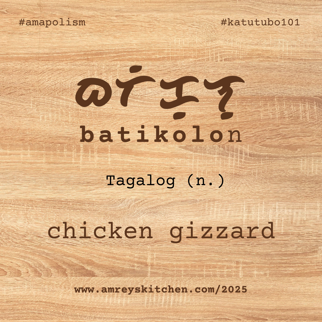 Batikolon/Balunbalunan. The very first time I had chicken gizzard was in Davao when I was a uni student. My boardmates brought me to this ihawan (griller’s place) in Mintal proper, and it was love at first bite! We found ourselves frequenting this place during my one-year stay there. This was over two decades ago. And it was not until I had Yeti back in 2023 that I started consuming chicken giblets again.